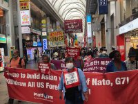Dans une Hiroshima en état de siège où le mémorial de la paix est fermé (!) et même son parc est ceinturé par des centaines de policiers qui en interdisent l’accès (très lourd symbole), dans cette ville choisie pour accueillir le G7 dont Zelensky est l’invité de déshonneur, manifestations très encadrées et morcelées par une énorme présence policière. "On croit mourir pour la patrie, on meurt pour les multinationales" , version moderne d’une phrase célèbre, très applaudie lors de la prise de (…)