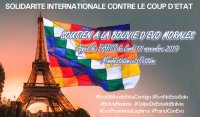À Paris (Dimanche 17 novembre 2019, à 15 heures - Esplanade du Trocadéro), à Marseille (à l’appel de l’ANC 13 est prévu ce mercredi 13 à 18h devant le consulat des USA à Marseille, rassemblement auquel s’associent le PCF, la FI et la CGT.) et partout en France pour dénoncer le coup d’État perpétré en Bolivie.